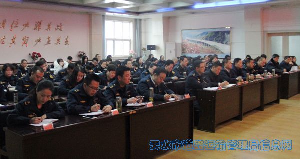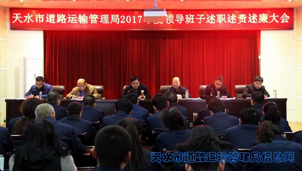 1月3日,市委第七考核组对天水市运管局2017年度领导班子和领导干部述职述责述廉进行了考核。考核组由市纪委第三派驻纪检组组长石怀智同志带队一行五人,天水市运管局王建明局长代表局领导班子及个人做述职述责述廉报告。局领导班子成员和全体干部职工及秦州、麦积分局副科以上干部参加了考核,共计80余人。
